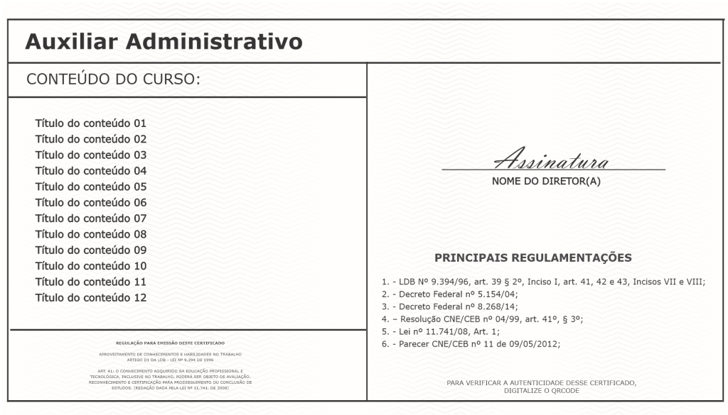Um certificado do segmento reconhecido e válido em todo o Brasil!