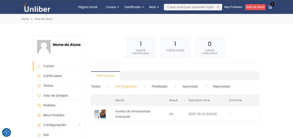 - Vá até a Área do Aluno e realize o pagamento da taxa do certificado para liberação.